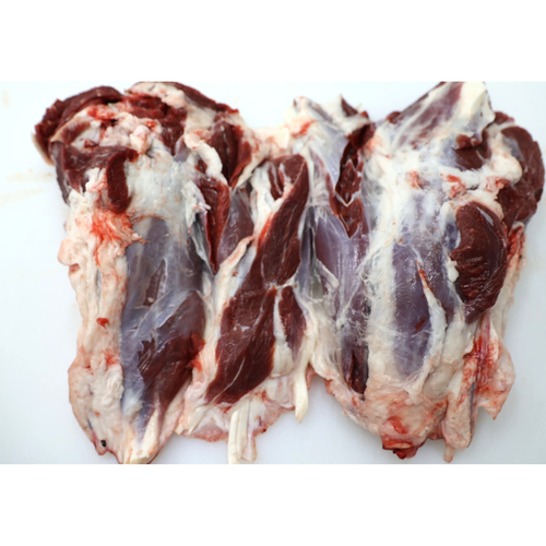 ふくらはぎにあたる部分の肉です。色合いの濃い赤身の部分です。筋が多く硬い肉だが、煮込めば煮込むほど柔らかくなり旨味がでるという特性のある部分です。ゼラチン質のコラーゲンが豊富で、煮込むと口当たりがよくとろけるような味わいになります<br />