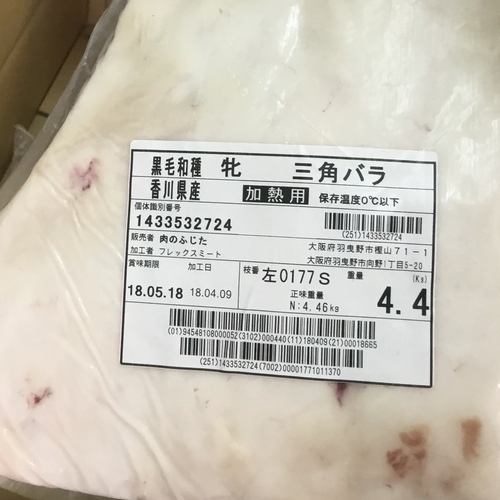 【不定貫】「讃岐牛A5(金ラベル)」三角ばら左4.4kg