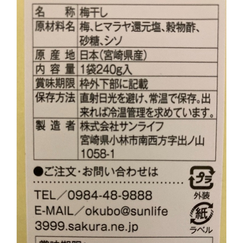 宮崎県産 梅干し(ヒマラヤ岩塩使用)240g ×40個