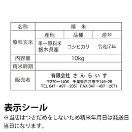 【新米】令和7年産 コシヒカリ 白米30kg 栃木県産 厳選米