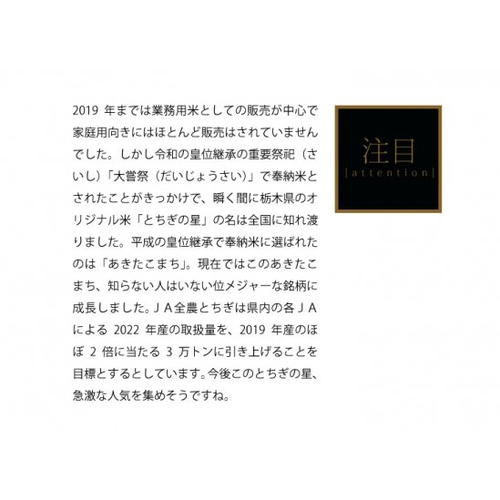 <p><span style="font-family: "Hiragino Kaku Gothic ProN", HiraKakuProN-W3, Meiryo, sans-serif, emoji;">食味ランキングでは最高評価の「特A」を受けるなど、全国的に高い評価を受けているお米です。</span></p>