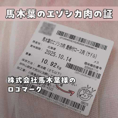 <p><span style="color: rgb(68, 68, 68); font-family: メイリオ, Meiryo, "Hiragino Kaku Gothic Pro", "ヒラギノ角ゴ Pro W3", Osaka, "MS Pゴシック", sans-serif; font-size: 14px; background-color: rgb(252, 251, 249);">馬木葉のエゾシカ肉は、ハンティングのプロである馬木葉様と、創立76年の歴史を持ち都心部を中心に食肉を卸売している弊社(本社:東京都杉並区)の長年の知見を合わせた環境で加工処理されています。</span><br style="box-sizing: border-box; color: rgb(68, 68, 68); font-family: メイリオ, Meiryo, "Hiragino Kaku Gothic Pro", "ヒラギノ角ゴ Pro W3", Osaka, "MS Pゴシック", sans-serif; font-size: 14px; background-color: rgb(252, 251, 249);" />
