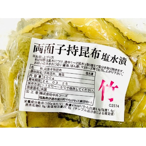 <span style="color: rgb(68, 68, 68); font-family: メイリオ, Meiryo, "Hiragino Kaku Gothic Pro", "ヒラギノ角ゴ Pro W3", Osaka, "MS Pゴシック", sans-serif; font-size: 14px; background-color: rgb(252, 251, 249);">年末年始に重宝する、子持ち昆布の塩水漬けです。サイズは不揃いですが短冊状に切り落としてあるので、塩抜きしてお好みの味付けでお使い頂けます。厚味のある子持ち昆布なので見た目も鮮やか、縁起物逸品としてお料理に彩りを添えます。</span><br style="box-sizing: border-box; color: rgb(68, 68, 68); font-family: メイリオ, Meiryo, "Hiragino Kaku Gothic Pro", "ヒラギノ角ゴ Pro W3", Osaka, "MS Pゴシック", sans-serif; font-size: 14px; background-color: rgb(252, 251, 249);" />