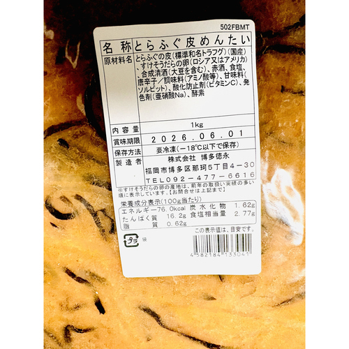 とらふぐ皮めんたい 1kg/袋