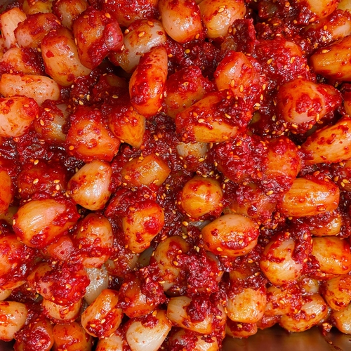 らっきょうの旨味と甘味、ヤンニョムの辛味、