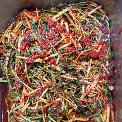 壬生菜(国産)、漬け原材料(唐辛子、ニンニク、生姜、アミエビ、イワシエキス、ごま、砂糖、すりニンニク)/調味料(アミノ酸等)※原材料の一部にエビを含む |