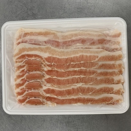 メキシコ産豚バラのスライスになります。ご購入者様のご希望の厚さでスライスいたします。