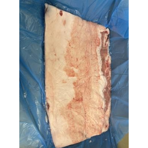 鹿児島県産の豚バラを原料に、サイズ規格をLサイズに統一して選別し、カット後すぐに冷凍処理した商品です。